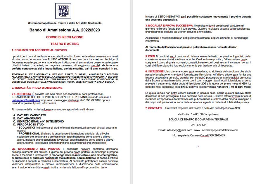 IIN QUESTA SEZIONE VI MOSTRIAMO I CORSI E I BANDI DEGLI ANNI PRECEDENTI